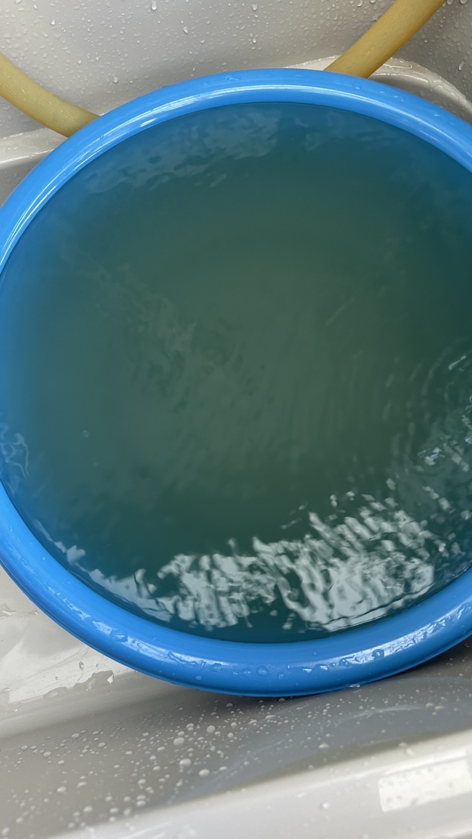圖1:洗完水塔後流出的黃色水,這是水管內沉積物被沖刷出來的現象